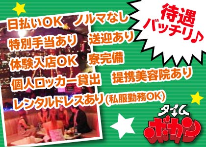 (1)日払いOK、ノルマなし、特別手当あり、寮完備、体験入店OK 送迎あり、レンタルドレスあり(私服勤務もOK)、提携美容院あり 個人ロッカー貸出 (2)昇給、昇格あり、寮完備、海外慰安旅行制度有 |